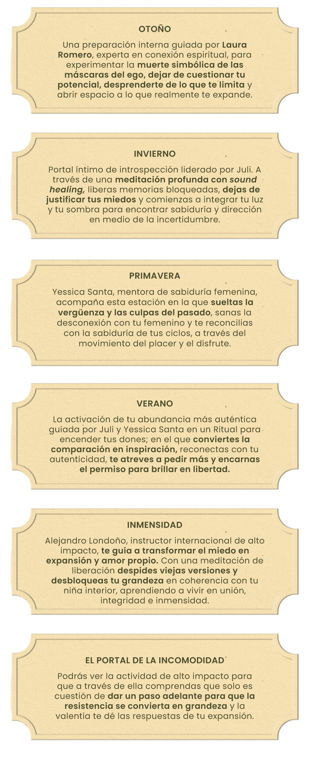 Portal íntimo de introspección liderado por Juli. A través de una meditación profunda con sound healing, liberas memorias bloqueadas, dejas de justificar tus miedos y comienzas a integrar tu luz y tu sombra para encontrar sabiduría y dirección en medio de la incertidumbre.