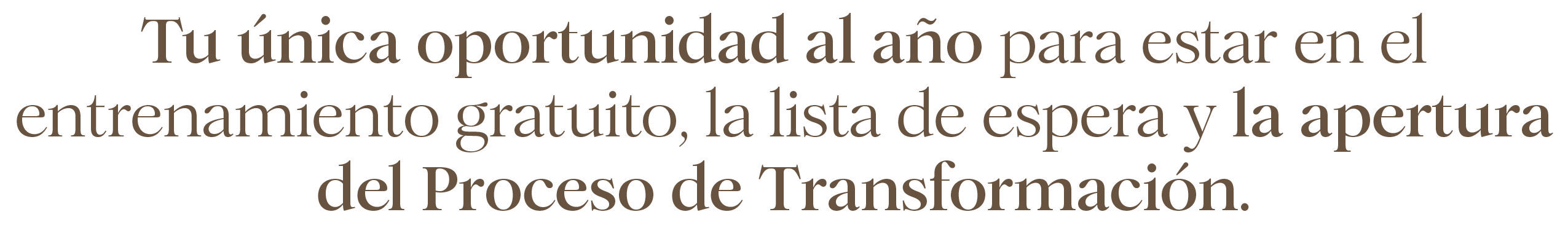 Inscríbete a la lista de espera para asegurar tu descuento y cupo en el lanzamiento del próximo Proceso de Transformación.